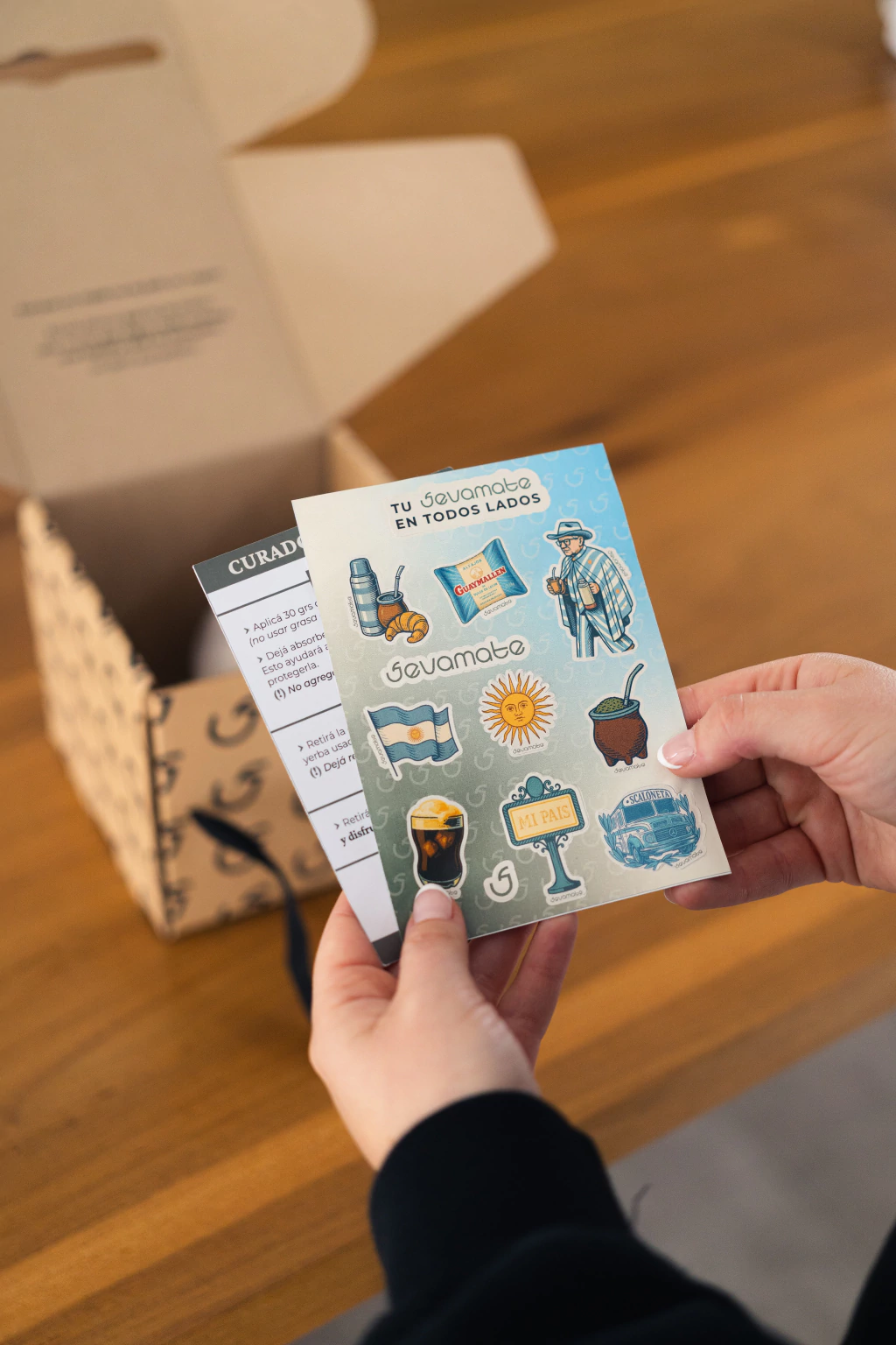 Cada mate es una pieza única, hecha a mano por uno de los mejores artesanos del país. Elaborado en madera de algarrobo, destaca por su nobleza y durabilidad.