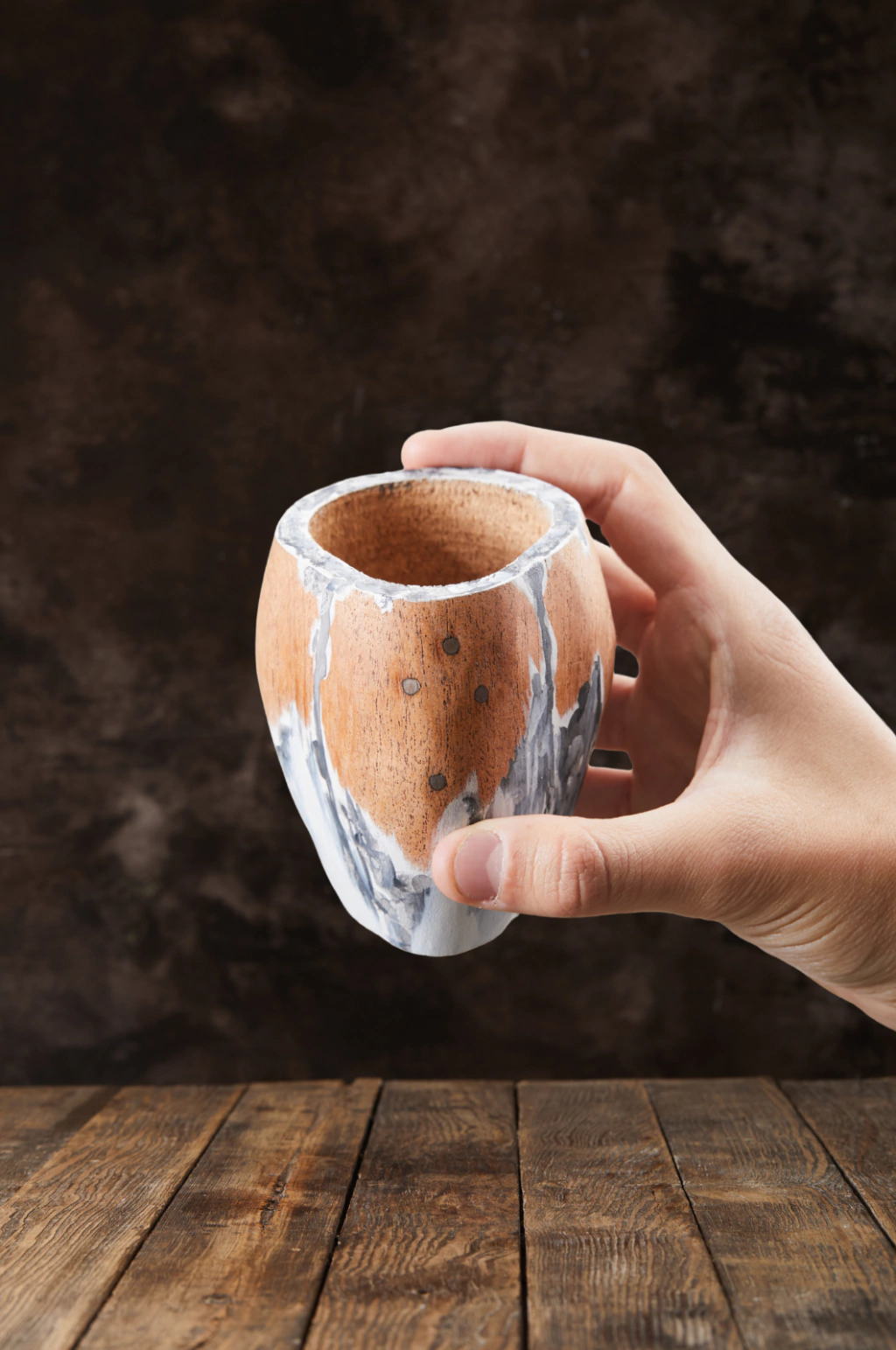 Cada mate es una pieza única, hecha a mano por uno de los mejores artesanos del país. Elaborado en madera de algarrobo, destaca por su nobleza y durabilidad.